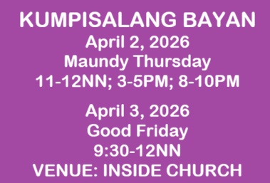 Contact Parish Office: (632)87356408 | 09457533713 (SMS/Viber)